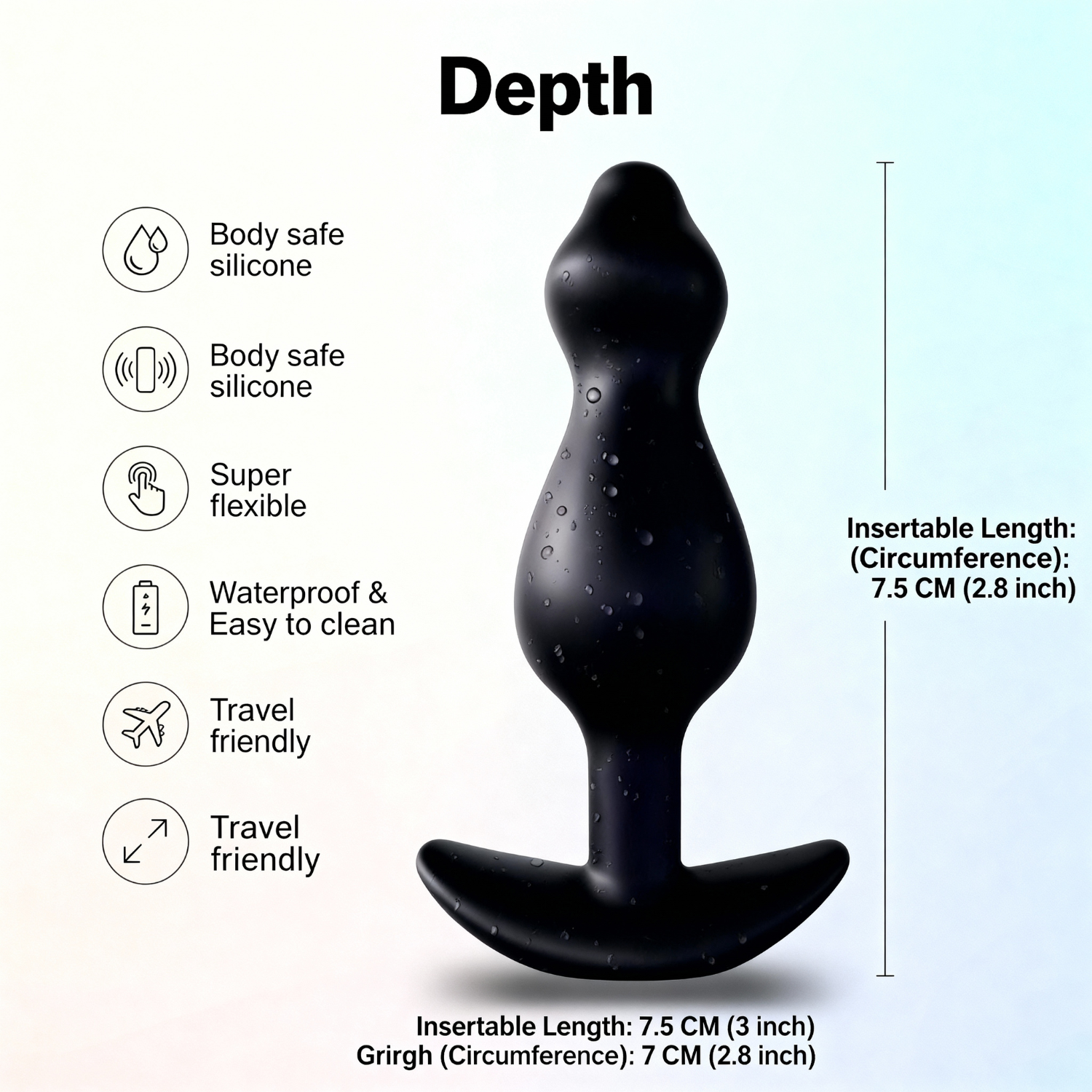 Depth is thoughtfully designed for those who value comfort, safety, and control in a compact form. Crafted from 100% body-safe silicone, it feels ultra-smooth on the skin while remaining firm enough for reliable handling and confident use.