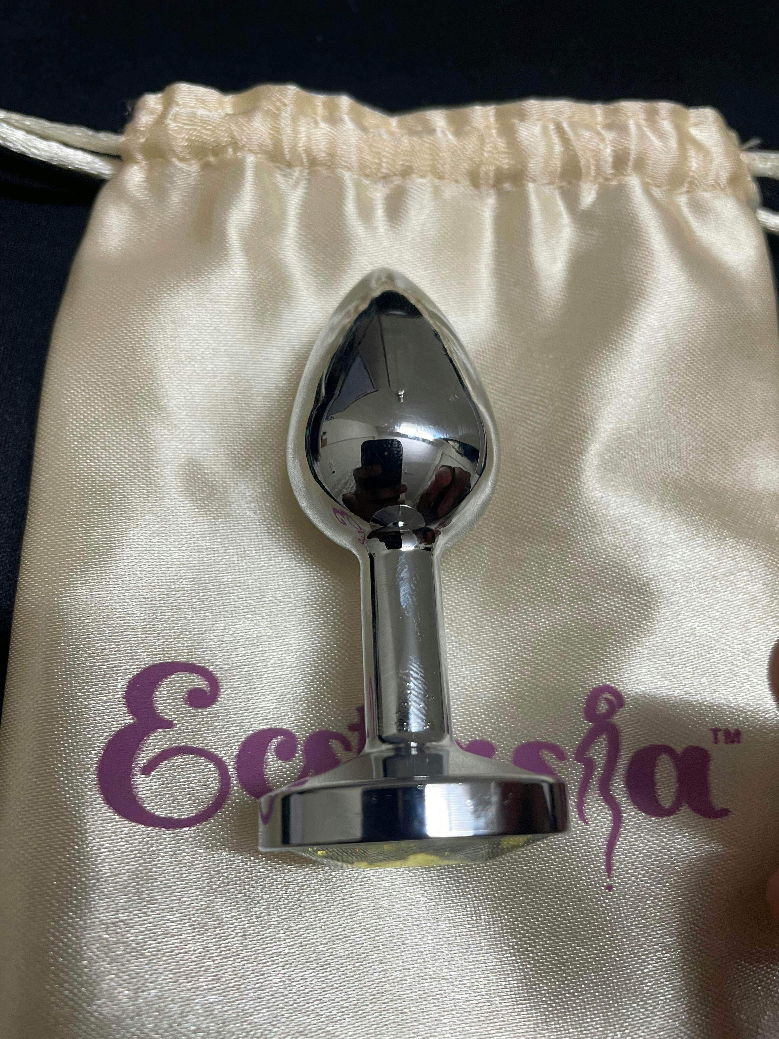 Im a total beginner. Considering that, this one takes a day or two to adjust but it feels good. It doesn’t hit the p-spot though, but lemme tell you one thing, it fells great mstrbtng having it plugged it. The orgasm is crazy with the hush plugged in. Plus, it looks good, is smooth and shiny, the stone (or gem whatever it is) looks shiny.