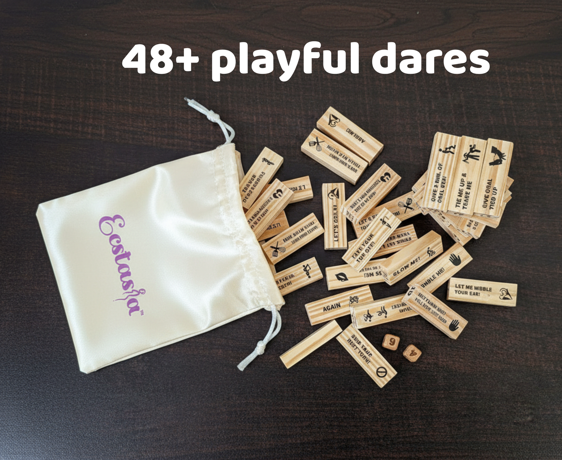 A playful twist on the classic stacking game, packed with 48+ spicy dares to turn any couch into a spark zone. Pull a block, read the dare, and let the chemistry do the rest.