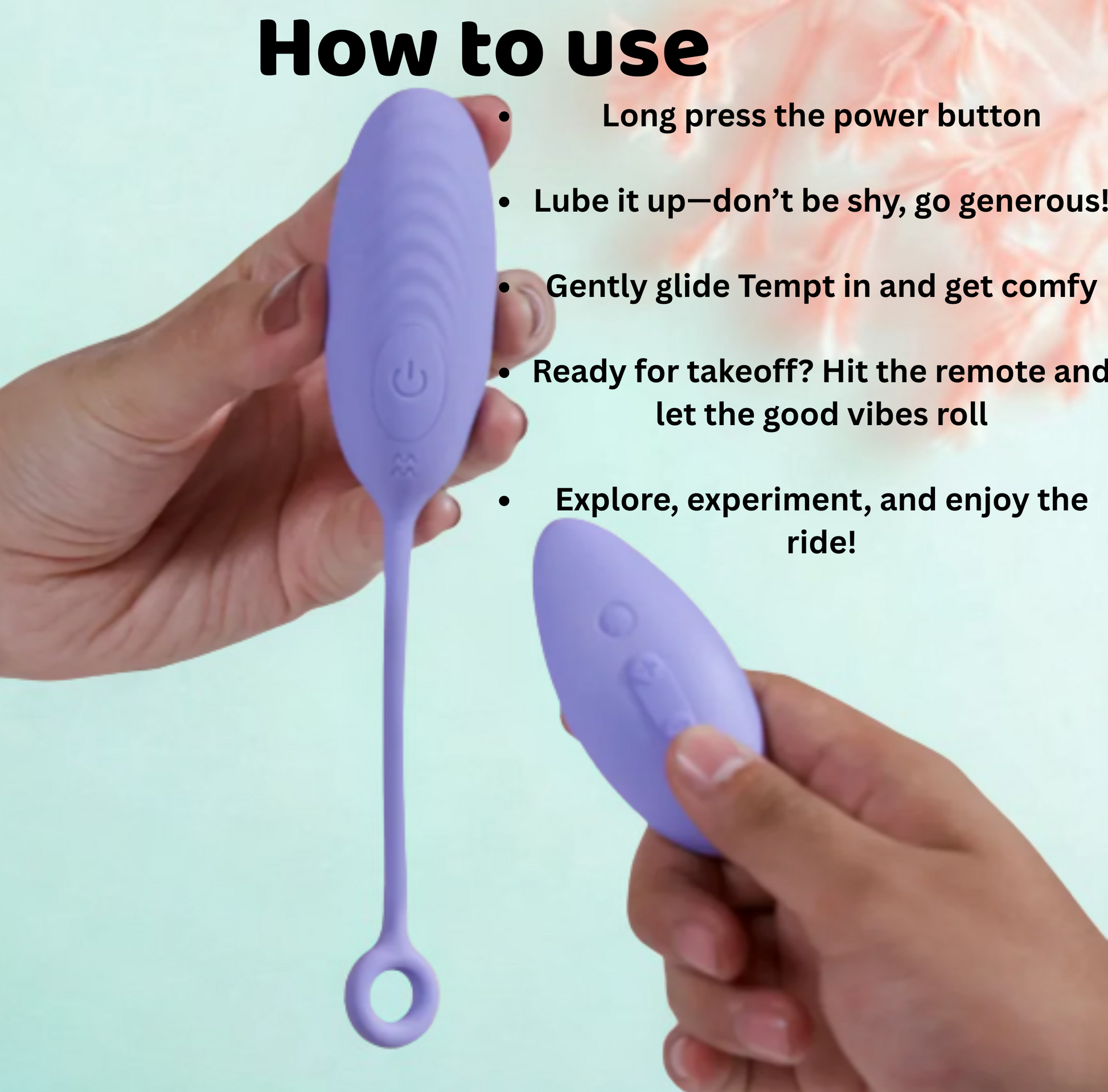 - Insert & Play: Gently insert Tempt and use the remote to explore different vibration patterns and intensities.